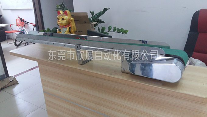 小斜坡皮带输送机:本输送带作为自动化机械手配套辅助设备,能有效提高工作空间及保护产品外观。