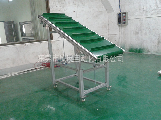 爬坡输送带,为两台注塑机节省空间,可以并用一台输送带把产品传送到指定操作台。